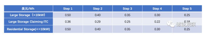 最初是按照容量“W”進(jìn)行初投資補(bǔ)貼,對單獨(dú)的先進(jìn)儲能系統(tǒng)按照2美元/W的標(biāo)準(zhǔn)補(bǔ)貼,對于與其他技術(shù)結(jié)合的儲能進(jìn)行100%(小于30kW)或50%的前期補(bǔ)貼。之后,將補(bǔ)貼標(biāo)準(zhǔn)逐步降低,2016年降至1.31美元/W。