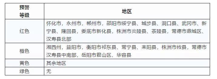 懷化市,永州市,郴州市,邵陽市綏寧縣、城步縣、洞口縣、武岡市、新寧縣、隆回縣,婁底市新化縣,株洲市炎陵縣、茶陵縣,常德市鼎城區(qū)、漢壽縣北部被劃分為紅色預警區(qū)域共計涉及14個市縣區(qū),暫停項目核準和下達新增建設計劃。