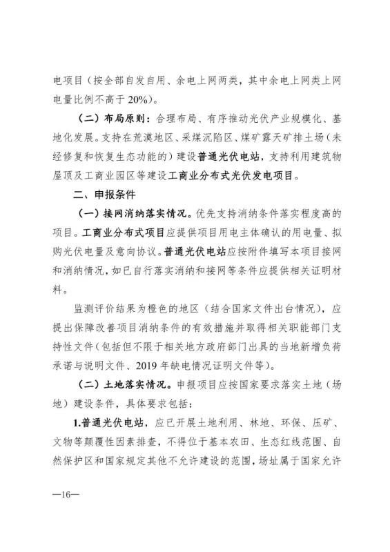 根據(jù)內(nèi)蒙古自治區(qū)黨委十屆十一次全委會暨全區(qū)經(jīng)濟(jì)工作會議精神,2020年光伏發(fā)電競價項目支持在荒漠地區(qū)、采煤沉陷區(qū)、露天煤礦排土場建設(shè)光伏電站;支持利用建筑物屋頂及工業(yè)園區(qū)等建設(shè)以自發(fā)自用為主的工商業(yè)分布式電站,工商業(yè)分布式光伏發(fā)電項目支持全部自發(fā)自用和余電上網(wǎng)兩類項目,其中余電上網(wǎng)項目上網(wǎng)電量比例不高于20%;優(yōu)先支持光伏+儲能項目建設(shè)。