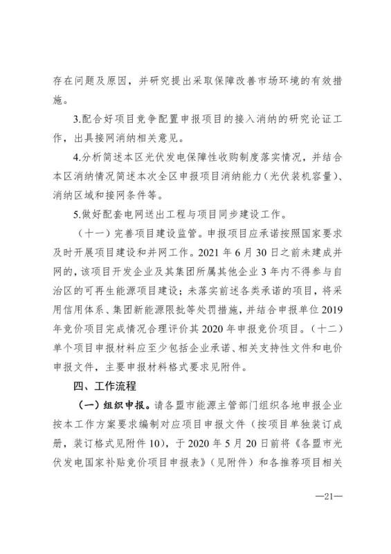 五、2020年內(nèi)蒙古自治區(qū)光伏發(fā)電競價項目的申報時間是怎么要求的?