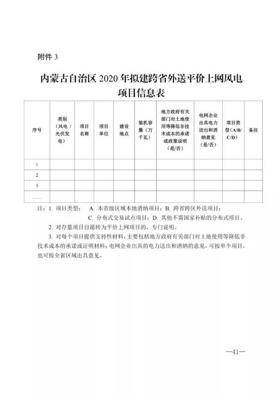 二是重新梳理報送跨省區(qū)平價上網(wǎng)風(fēng)電基地項目信息。按照《國家發(fā)展改革委國家能源局關(guān)于積極推進(jìn)風(fēng)電、光伏發(fā)電無補貼平價上網(wǎng)有關(guān)工作的通知》(發(fā)改能源[2019]19號)和《國家能源局綜合司關(guān)于報送2019年度風(fēng)電、光伏發(fā)電平價上網(wǎng)項目的通知》要求,根據(jù)各有關(guān)盟市報送情況,內(nèi)蒙古自治區(qū)能源局在2019年向國家能源局組織上報了兩批次不需要國家補貼的跨省區(qū)平價外送風(fēng)電項目名單。考慮到2019年已經(jīng)向國家報送項目的相關(guān)信息需要進(jìn)一步完善、2020年還有新增項目等因素,要求有關(guān)盟市能源主管部門重新梳理2020年底前能夠核準(zhǔn)并且開工建設(shè)、按照平價上網(wǎng)推進(jìn)的跨省區(qū)外送風(fēng)電基地項目。