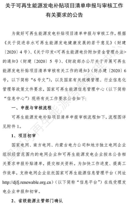 中國儲能網(wǎng)訊:近日,國家能源局可再生能源發(fā)電項目信息管理平臺發(fā)布《關(guān)于可再生能源發(fā)電補(bǔ)貼項目清單申報與審核工作有關(guān)要求的公告》,詳細(xì)介紹了包括風(fēng)電在內(nèi)的可再生能源發(fā)電補(bǔ)貼項目該如何申報。具體如下: