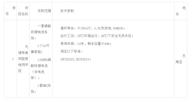 備注:采購1-2套儲能系統(tǒng)樣品用于東南亞儲能項(xiàng)目