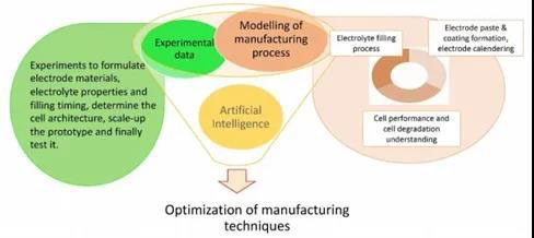 b. 制造過程數(shù)字化:開發(fā)靈活的制造流程和高精度建模工具,以優(yōu)化工藝、條件和機器參數(shù),開發(fā)用于處理電極漿料,電極片生產(chǎn),電池組裝,電池包組裝和電池性能的實時模型(即用于電池制造的數(shù)字化模型)。