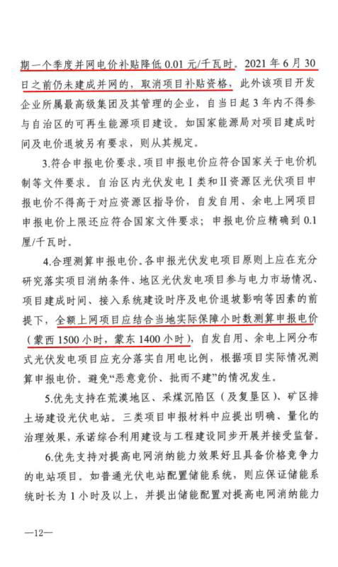 根據(jù)文件,2020年新增光伏發(fā)電消納空間全部通過競爭性配置組織申報,主要支持荒漠、采煤沉陷區(qū)(復墾區(qū))、露天礦排土場。2020年光伏新增消納空間共1.4GW,其中蒙西800MW、蒙東600MW。