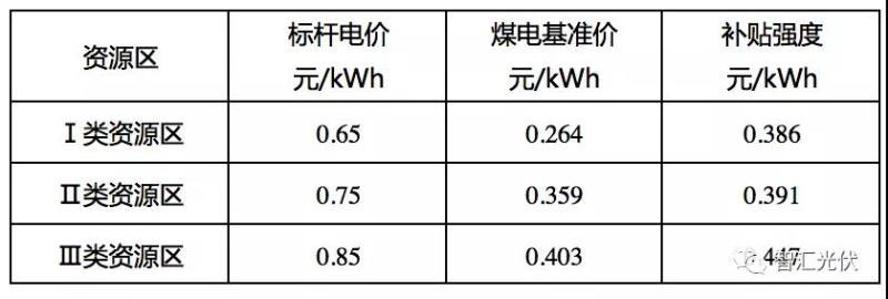 自2017年發(fā)布第一批光伏扶貧項(xiàng)目開(kāi)始,光伏扶貧項(xiàng)目的電價(jià)始終是全額上網(wǎng)執(zhí)行0.65元/kWh、0.75元/kWh、0.85元/kWh的電價(jià),自發(fā)自用執(zhí)行0.42元/kWh的度電補(bǔ)貼。如果以目前的煤電基準(zhǔn)價(jià)考慮,則不同資源區(qū)的度電補(bǔ)貼如下表所示。