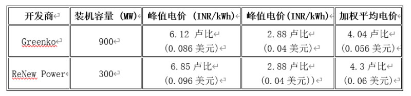 Greenko公司部署的裝機容量為900MW混合能源的加權平均電價為4.04印度盧比/kWh(5.61美分/kWh)。