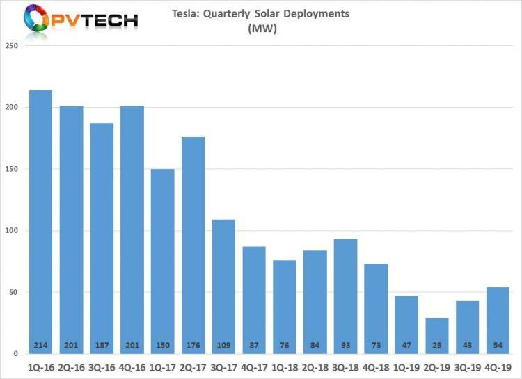 特斯拉公司日前發(fā)布了該公司2019年的全年業(yè)績,表明該公司2019年部署的太陽能裝機(jī)容量為173MW,與2017年的522MW和2018年的326MW的裝機(jī)容量相比相去甚遠(yuǎn)。