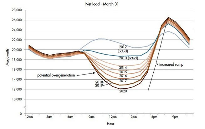 這類似于太陽(yáng)能發(fā)電行業(yè)的“鴨子曲線”(如圖2所示),該曲線描述了用戶對(duì)于太陽(yáng)能發(fā)電設(shè)施在白天和夜間的電力需求,這表明現(xiàn)有的電網(wǎng)基礎(chǔ)設(shè)施難以滿足用戶的電力需求。