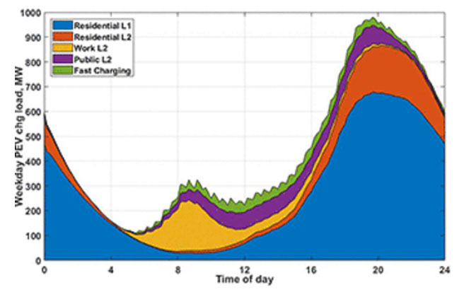 在過(guò)去的幾年中,電動(dòng)汽車行業(yè)已經(jīng)確定了電網(wǎng)容量的某些模式。研究人員對(duì)于電動(dòng)汽車導(dǎo)致電網(wǎng)產(chǎn)生的“龍曲線”(如圖1所示)發(fā)出警告?!褒埱€”是指電動(dòng)汽車充電對(duì)于電力需求峰值曲線的影響,是指電動(dòng)汽車用戶通常在工作日早晨以及夜晚在家為電動(dòng)汽車充電時(shí)出現(xiàn)的能源需求高峰。