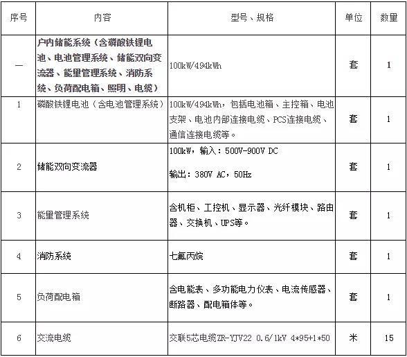 項目概況:廣州城市用電公司根據(jù)2020-2022年白云局配網(wǎng)側(cè)儲能租賃服務(wù)項目需求,擬采購分布式電化學(xué)儲能系統(tǒng),系統(tǒng)規(guī)模為100kW/494kWh,主要包括主要包括磷酸鐵鋰鋰電池(含電池管理系統(tǒng))、儲能雙向變流器、能量管理系統(tǒng)、配電箱、消防系統(tǒng)、交流電纜等。根據(jù)建設(shè)工期需要,為保證項目按期完工,需進行該項目儲能成套設(shè)備招標(biāo)工作,設(shè)備采購清單包括但不限于下表所示。