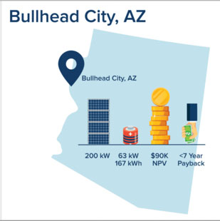 電池儲(chǔ)能系統(tǒng)的部署也正在迅速變得經(jīng)濟(jì),特別是對(duì)于像布爾黑德市這樣的城市中的居民來說,其商業(yè)需求收費(fèi)高(每千瓦15美元)加上使用時(shí)間費(fèi)率(TOU)結(jié)構(gòu)。對(duì)于這些客戶來說,太陽(yáng)能+儲(chǔ)能系統(tǒng)將在不到7年的時(shí)間內(nèi)收回投資。對(duì)于亞利桑那州的典型中型商業(yè)客戶來說,每年將節(jié)省12萬美元的電費(fèi)。