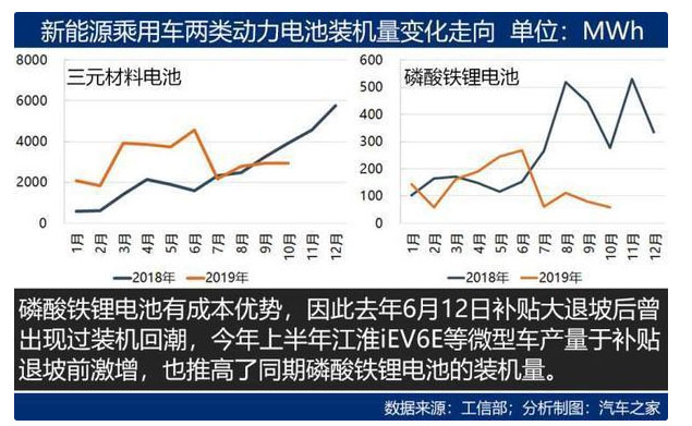 國家的政策規(guī)劃,一度是鼓勵高能量密度電池的,而新能源汽車本身對長續(xù)駛里程的追求,也推動了三元材料電池應(yīng)用規(guī)模的擴(kuò)大,從今年新能源乘用車的裝機(jī)電池類型看,磷酸鐵鋰電池?zé)o論是絕對量還是占比都在縮減,而三元材料電池上升勢頭明顯,車企熱衷于追逐高鎳體系三元材料電池,比如NCM622、NCM811電池。