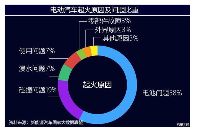 在已查明的著火原因中,電池問題占比最高,為58%,其中又以搭載三元鋰電池的車型為主。中國工程院院士楊裕生認(rèn)為,電動汽車頻繁燃燒的根源,第一個就是電池技術(shù)的原因。中國動力電池創(chuàng)新聯(lián)盟副秘書長王子冬也認(rèn)為,電動車自然和高鎳配方的三元鋰電池有強(qiáng)相關(guān)性,但并非必然。