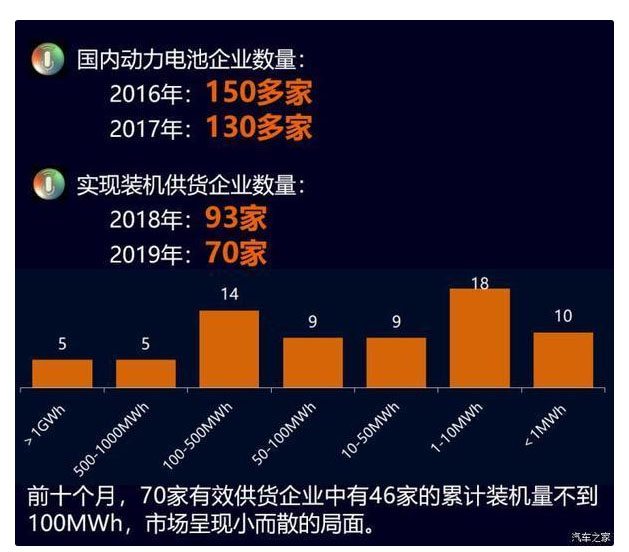 2019年,新能源汽車這個熱門行業(yè)有點冷,與之唇齒相依的動力電池行業(yè)也一樣。首先是場內(nèi)玩家數(shù)量驟減,與最熱鬧的三年前相比,已經(jīng)有一半的企業(yè)“休眠”了,如果再細(xì)究下玩家們的體量,可以發(fā)現(xiàn)市場局面依然是小而散的。