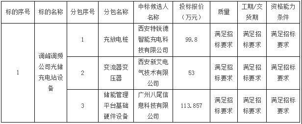 本南方電網(wǎng)調(diào)峰調(diào)頻發(fā)電有限公司光儲(chǔ)充電站設(shè)備(充放電樁、變流器變壓器、儲(chǔ)能平臺(tái)硬件)采購(gòu)項(xiàng)目(招標(biāo)項(xiàng)目編號(hào):0002200000060688),經(jīng)評(píng)標(biāo)委員會(huì)評(píng)審,現(xiàn)將中標(biāo)候選人公示如下: