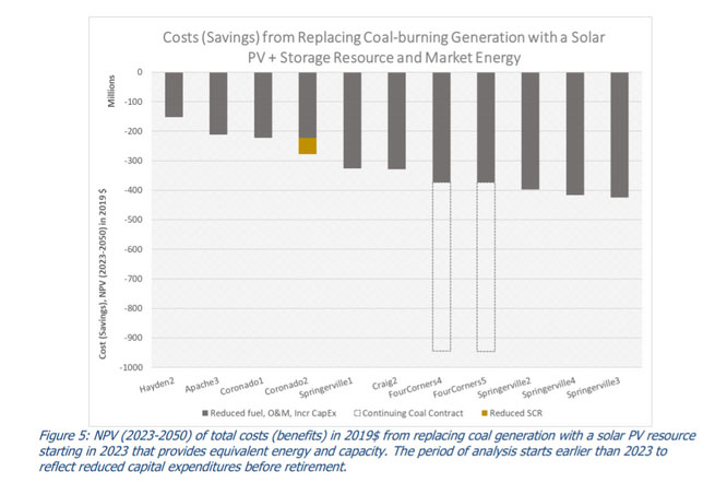 該報(bào)告調(diào)查了該州為消費(fèi)者提供電力的6家燃煤發(fā)電廠的11個(gè)燃煤發(fā)電機(jī)組的運(yùn)營情況,得出了這個(gè)結(jié)論:假設(shè)到亞利桑那州2023年將所有燃煤發(fā)電機(jī)組全部更換為太陽能+儲(chǔ)能項(xiàng)目,可以為該州消費(fèi)者節(jié)省35億美元,如果考慮減少溫室氣體排放產(chǎn)生的社會(huì)效益,估計(jì)將超過100億美元。
