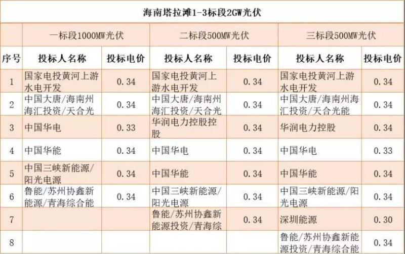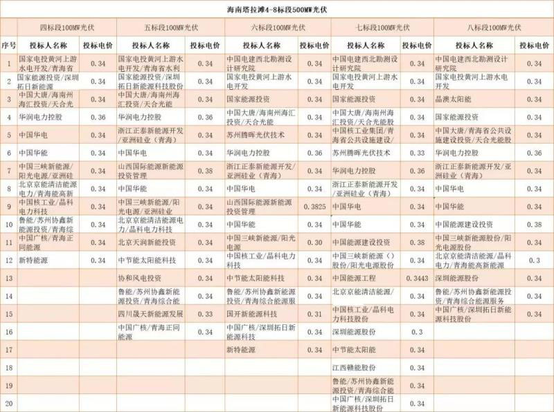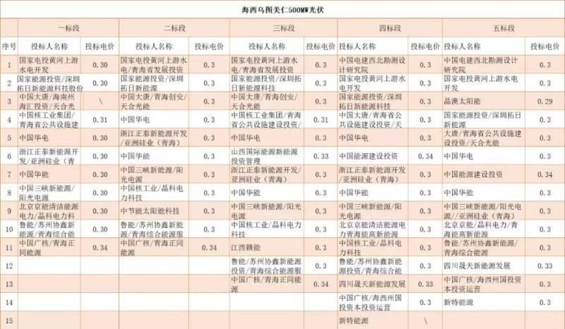 根據(jù)投標電價得分標準,海西州、海南州的滿分電價分別為0.3、0.34元/千瓦時。從各企業(yè)的開標價格看,約80%企業(yè)的申報電價是卡著滿分電價投標的,這可以明顯看出,各投資企業(yè)對該基地“勢在必得”的決心。當然也有少量企業(yè)報了比滿分電價還低的價格——這既無法增加客觀分數(shù),也無法博得眼球。