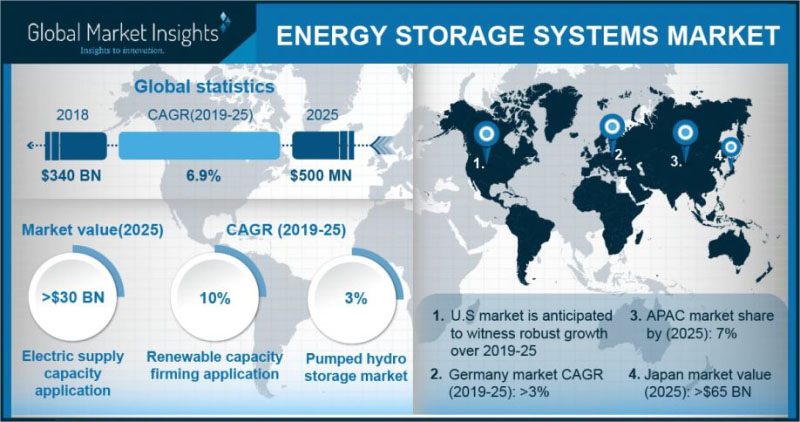 國際能源署(IEA)表示,2018年可再生能源發(fā)電量占全球能源需求增長的45%。儲能系統(tǒng)必將在實現(xiàn)下一階段的能源轉(zhuǎn)型中發(fā)揮重要作用。隨著風力發(fā)電量和太陽能發(fā)電量的激增,更多部署儲能解決方案將為關鍵應用領域的脫碳提供極大幫助,并加大全球儲能市場規(guī)模。