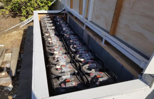 如果維護得當,蓄電池可以使用很長時間。這些使用了23年的1,200Ah的Crown Battery電池為一家牧場供電。