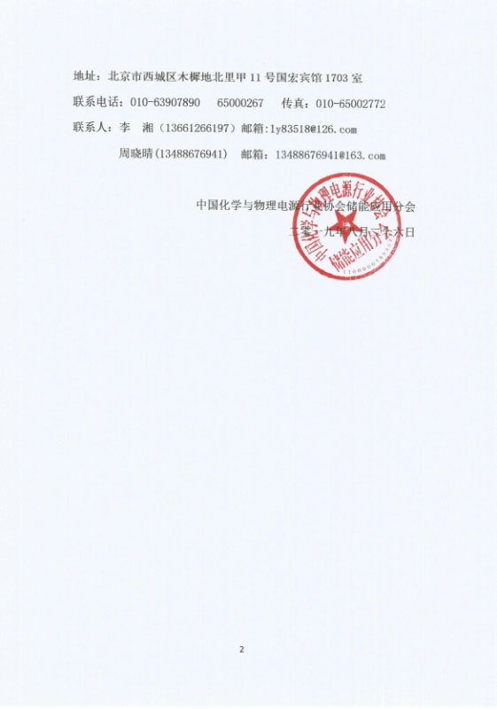 中國(guó)化學(xué)與物理電源行業(yè)協(xié)會(huì)儲(chǔ)能應(yīng)用分會(huì)秘書(shū)處