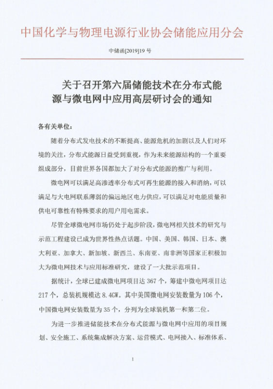 關(guān)于召開第六屆儲(chǔ)能技術(shù)在分布式能源與微電網(wǎng)中應(yīng)用高層研討會(huì)的通知
