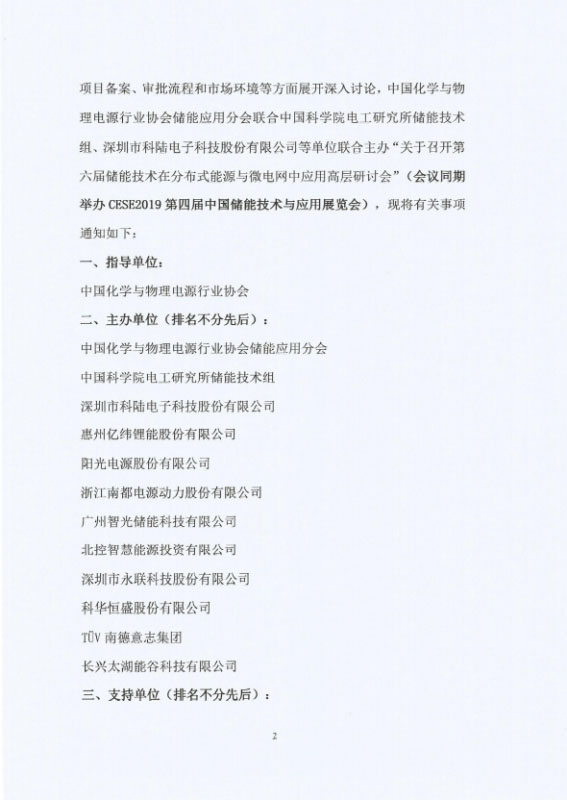 為進(jìn)一步推進(jìn)儲(chǔ)能技術(shù)在分布式能源與微電網(wǎng)中應(yīng)用的項(xiàng)目規(guī)劃、安全施工、系統(tǒng)集成解決方案、運(yùn)營(yíng)模式、電網(wǎng)接入、標(biāo)準(zhǔn)體系、項(xiàng)目備案、審批流程和市場(chǎng)環(huán)境等方面展開深入討論,中國(guó)化學(xué)與物理電源行業(yè)協(xié)會(huì)儲(chǔ)能應(yīng)用分會(huì)聯(lián)合中國(guó)科學(xué)院電工研究所儲(chǔ)能技術(shù)組、深圳市科陸電子科技股份有限公司等單位聯(lián)合主辦“關(guān)于召開第六屆儲(chǔ)能技術(shù)在分布式能源與微電網(wǎng)中應(yīng)用高層研討會(huì)”(會(huì)議同期舉辦CESE2019第四屆中國(guó)儲(chǔ)能技術(shù)與應(yīng)用展覽會(huì)),現(xiàn)將有關(guān)事項(xiàng)通知如下: