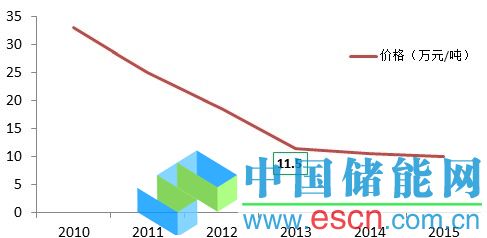 盡管天賜材料實現(xiàn)了六氟磷酸鋰的自給自足,但隨著國內企業(yè)在六氟磷酸鋰技術上的不斷突破,國產(chǎn)化率逐漸的提高,其價格也在逐漸的下滑,預計2013年價格11.5萬元/噸左右,較2011年下降了65.2%。
