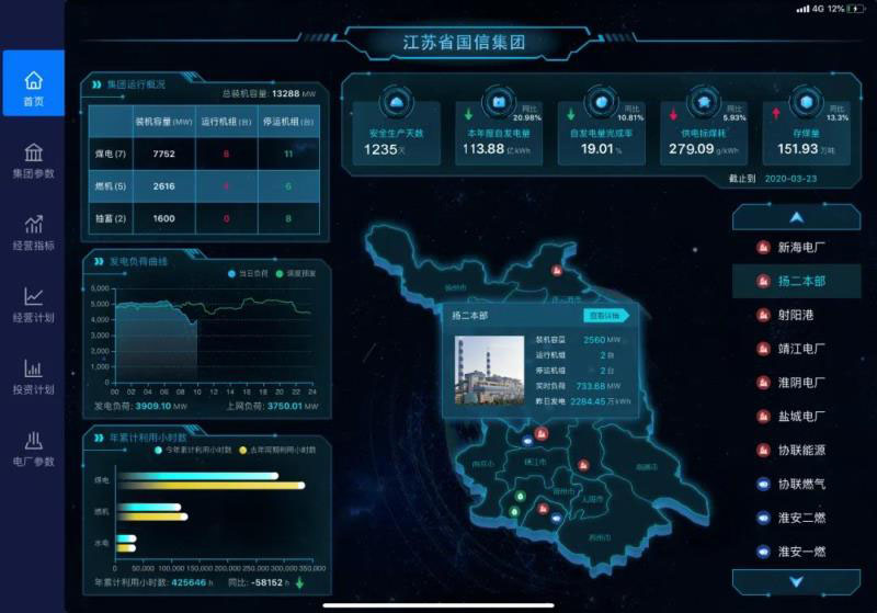 近期,“國信集團智慧能源平臺”移動版應(yīng)用正式上線。這款應(yīng)用包含集團指標、廠級實時監(jiān)控信息系統(tǒng)指標、經(jīng)營指標及各類歷史數(shù)據(jù)匯總分析展示,將下屬31家電廠的生產(chǎn)經(jīng)營各領(lǐng)域的真實數(shù)據(jù)每天60億條的大數(shù)據(jù),全方位分析經(jīng)營情況,自動生成文字加圖表80多頁的經(jīng)營分析報告,自動為集團生成財務(wù)的3大報表。此外,35萬個測點數(shù)據(jù)、2699張完整重現(xiàn)電廠的實時畫面,足夠支撐國信集團實時監(jiān)控所有電廠的各系統(tǒng)、設(shè)備的運行情況。