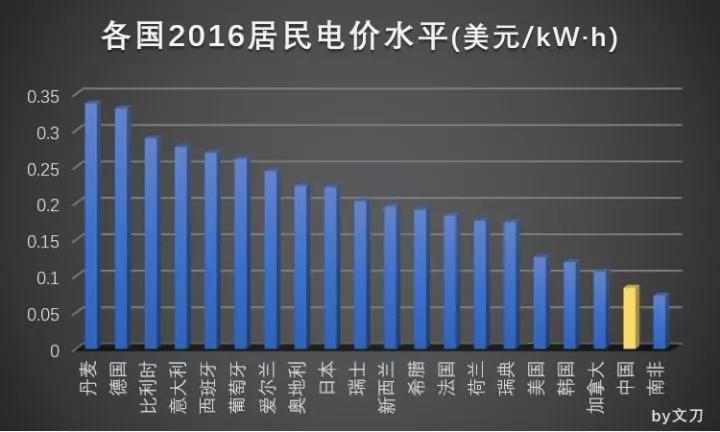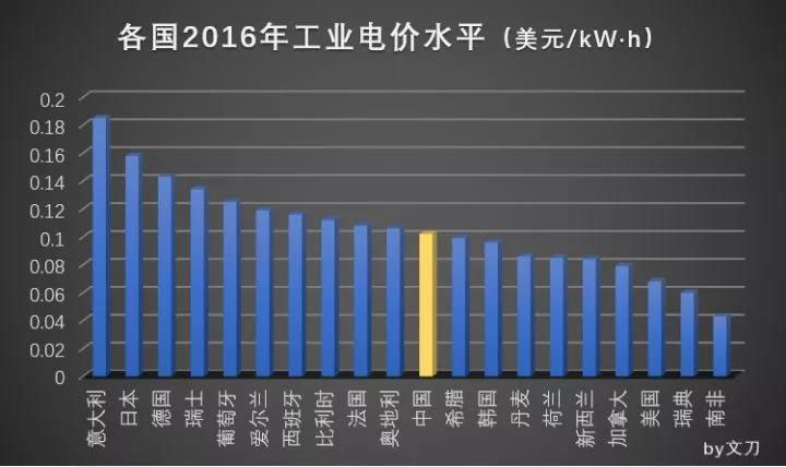 整體來看,我國的電價(jià)水平,整體屬于中等略偏下。以2016年的數(shù)據(jù),采用美元為基準(zhǔn)進(jìn)行轉(zhuǎn)換后進(jìn)行比較。同時(shí),由于各地的電價(jià)數(shù)據(jù)形式不同,如豐枯季、分時(shí)電價(jià)等,所以只取了平均的電價(jià)水平。
