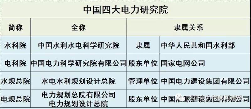 中國儲能網(wǎng)訊:在我國電力能源行業(yè),目前主要活躍著四大國字頭的電力研究院,分別是水科院、電科院、水規(guī)總院、電規(guī)總院,他們的全稱及隸屬關(guān)系見下表: