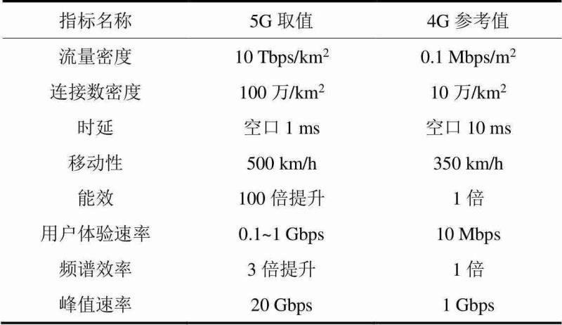相比同類型的無線網(wǎng)絡(luò)4G技術(shù),如表1所示,5G技術(shù)KPI全方位超越4G技術(shù)。