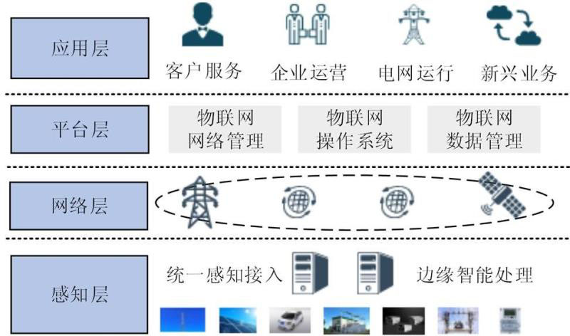 2) 網(wǎng)絡(luò)層重點是推進(jìn)電力無線專網(wǎng)和終端通信建設(shè),增強(qiáng)帶寬,實現(xiàn)深度全覆蓋,滿足新興業(yè)務(wù)發(fā)展需要。