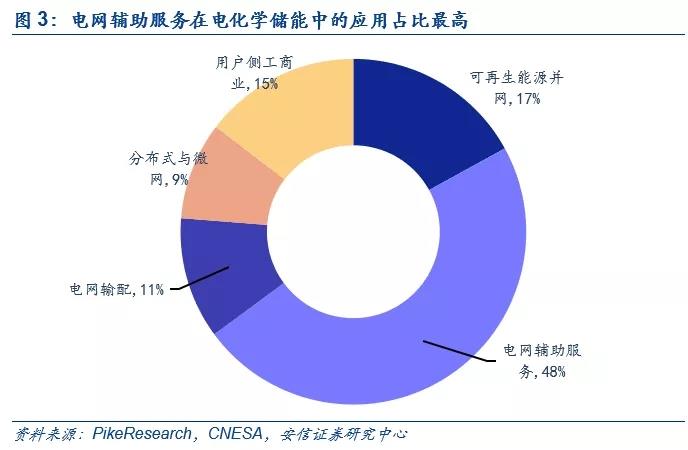 不過,CNESA《儲能產(chǎn)業(yè)研究白皮書2019》稱,2019年底我國電化學儲能裝機規(guī)模將達到1.92GW;隨著電力體制改革的進一步推進,推動市場化機制和價格機制的儲能政策將為儲能應(yīng)用帶來新一輪的高速發(fā)展,電化學儲能的規(guī)模將實現(xiàn)兩連跳,2022年突破10GW,2023年接近20GW。而從全球整體電化學儲能應(yīng)用來看,電網(wǎng)輔助服務(wù)在電化學儲能中的占比接近50%。