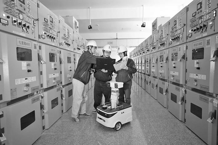 11月10日,在浙江金華110千伏站前智慧變電站內(nèi),一排排開(kāi)關(guān)柜前,智能機(jī)器人通過(guò)電子眼開(kāi)始了日常巡視。110千伏站前變電站是全國(guó)首座全戶內(nèi)智慧變電站,于當(dāng)天正式投運(yùn)。