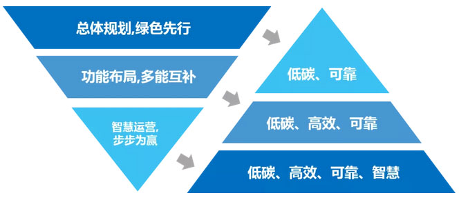 以能源為主線,由時(shí)間維度的建設(shè)目標(biāo)及空間尺度的技術(shù)路線組成的坐標(biāo)體系下實(shí)現(xiàn)全過程、全方位的能源解決方案拼圖。