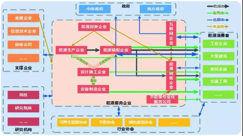 能源互聯(lián)網(wǎng)生態(tài)圈涵蓋能源“發(fā)—輸—配—用”各環(huán)節(jié)的企業(yè)、用戶以及上下游的設(shè)備制造商、互聯(lián)網(wǎng)公司、政府部門、科研院所、金融公司等主體。建設(shè)互惠共贏的能源互聯(lián)網(wǎng)生態(tài)圈就是發(fā)揮各主體優(yōu)勢,打通各主體間的業(yè)務(wù)流、信息流、資金流,提升要素資源配置效率,為能源系統(tǒng)的轉(zhuǎn)型發(fā)展創(chuàng)造良好平臺。