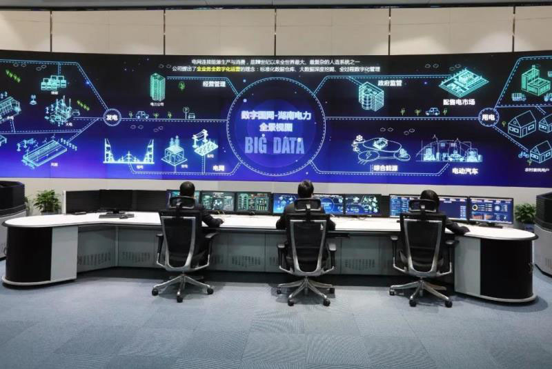 ▲國(guó)網(wǎng)湖南電力數(shù)據(jù)管理人員在數(shù)據(jù)共享中心監(jiān)測(cè)分析數(shù)據(jù)