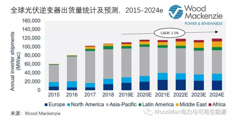 Wood Mackenzie預(yù)測2019年到2024年,中央獨立逆變器和三相逆變器的產(chǎn)品收入將面臨大幅下降。