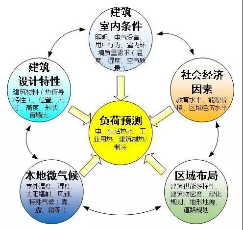 DIES的用能需求是所有分散于區(qū)域內(nèi)的能源消費(fèi)用戶用能需求的總和,因此對(duì)單個(gè)用戶單元的影響因素往往也會(huì)對(duì)整個(gè)區(qū)域用能情況造成類似影響,比如建筑的物理特性、照明、用戶行為、用能類型、建筑密度、布局、人口密度等??蓪⑺锌赡軐?duì)DIES負(fù)荷造成影響的因素歸納為五大類:建筑室內(nèi)條件、建筑設(shè)計(jì)特性、區(qū)域布局、本地微氣候和社會(huì)經(jīng)濟(jì)性。