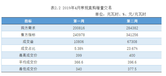 圖2.3 2019年4月常規(guī)直購增量交易(第一周)