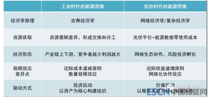 工業(yè)時代的能源思維和信息時代的能源思維,個人認(rèn)為在以下這些方面是不同的: