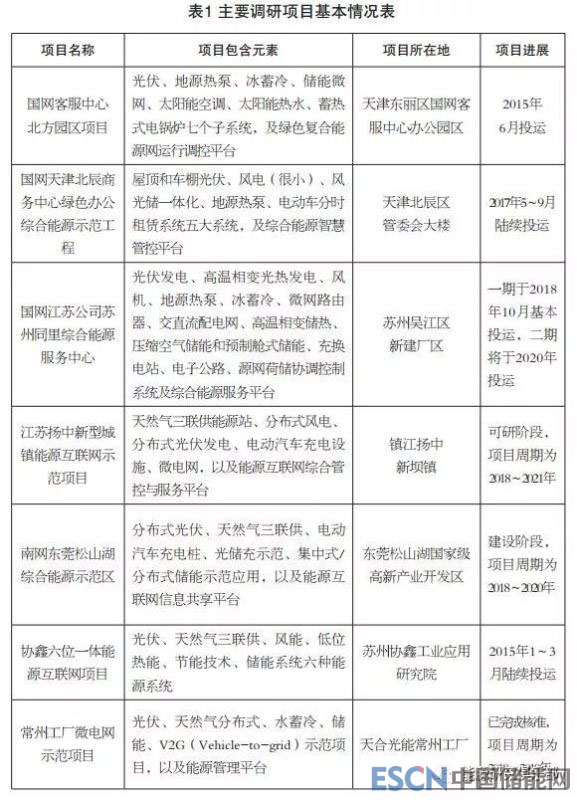 筆者重點(diǎn)調(diào)研了天津、江蘇、廣東地區(qū)開展綜合能源服務(wù)的五家企業(yè),涉及近十個(gè)綜合能源服務(wù)項(xiàng)目。從調(diào)研結(jié)果看,國網(wǎng)天津公司綜合能源服務(wù)推廣初顯成效,國網(wǎng)江蘇公司綜合能源服務(wù)進(jìn)展迅速,南網(wǎng)廣東公司正積極探索園區(qū)級示范項(xiàng)目,協(xié)鑫全面布局“源網(wǎng)售用云”均已落地,天合光能著力打造“發(fā)儲配用云”能源物聯(lián)網(wǎng),基本情況見表1。
