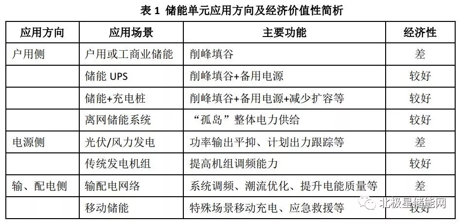 經(jīng)過(guò)近幾年儲(chǔ)能產(chǎn)業(yè)同仁的不懈努力推動(dòng),儲(chǔ)能產(chǎn)業(yè)的發(fā)展正呈欣欣向榮之勢(shì),規(guī)范和促進(jìn)儲(chǔ)能產(chǎn)業(yè)發(fā)展的指導(dǎo)文件和基礎(chǔ)政策頻出,而在此背景下,儲(chǔ)能產(chǎn)品在儲(chǔ)能領(lǐng)域的應(yīng)用市場(chǎng)方向也日益趨于清晰。儲(chǔ)能產(chǎn)業(yè)的發(fā)展離不開電力這個(gè)主體,整理儲(chǔ)能產(chǎn)品在電力主體里的應(yīng)用場(chǎng)景,包括發(fā)、輸、配、用這四個(gè)環(huán)節(jié),歸結(jié)其功能基本可分為四大類,即調(diào)峰、調(diào)頻、提升電力系統(tǒng)穩(wěn)定性和靈活性以及提升電能質(zhì)量。依據(jù)這儲(chǔ)能產(chǎn)品在電力系統(tǒng)這四大類功能價(jià)值,衍伸出許多細(xì)分應(yīng)用領(lǐng)域,而根據(jù)現(xiàn)有電力系統(tǒng)電價(jià)特點(diǎn)和相關(guān)輔助服務(wù)的配套政策,連同其經(jīng)濟(jì)收益簡(jiǎn)單可歸納如下表。