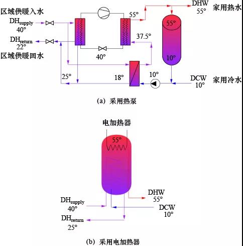 圖1 低溫區(qū)域供暖家庭用戶側(cè)二次加熱方式示例