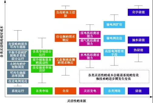 圖3 電力系統(tǒng)中靈活性的來源分布與相對成本