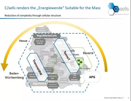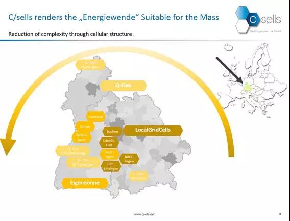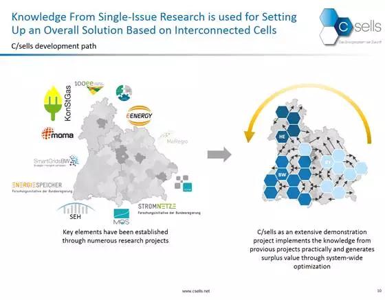 “C-sells”隸屬于在2016年12月正式啟動(dòng)的SINTEG項(xiàng)目(Smart Energy Showcases – Digital Agenda for the Energy Transition),是德國(guó)繼E-ENERGY六個(gè)示范項(xiàng)目后在能源互聯(lián)網(wǎng)方面的進(jìn)一步探索。E-Energy是2008年德國(guó)聯(lián)邦經(jīng)濟(jì)與能源部在智能電網(wǎng)的基礎(chǔ)上推出的一個(gè)為期4年的技術(shù)創(chuàng)新促進(jìn)計(jì)劃。它提出打造新型能源網(wǎng)絡(luò),在整個(gè)能源供應(yīng)體系中實(shí)現(xiàn)綜合數(shù)字化互聯(lián)以及計(jì)算機(jī)控制和監(jiān)測(cè)的目標(biāo)。E-Energy充分利用信息和通信技術(shù)開(kāi)發(fā)新的解決方案,以滿(mǎn)足未來(lái)以分布式能源供應(yīng)結(jié)構(gòu)為特點(diǎn)的電力系統(tǒng)的需求。