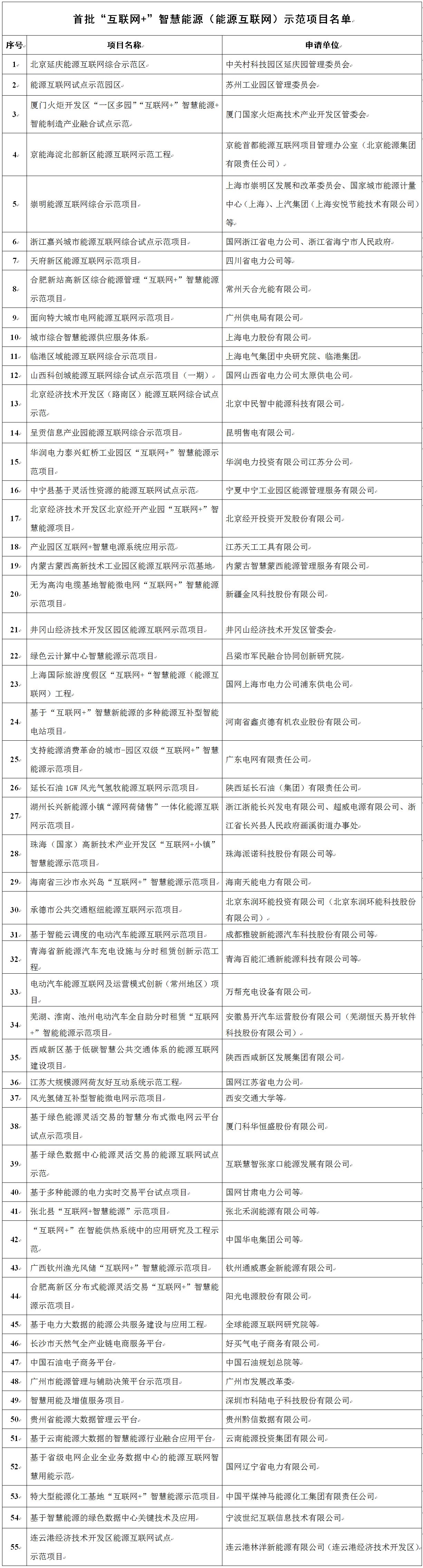 附件:首批“互聯(lián)網(wǎng)+”智慧能源(能源互聯(lián)網(wǎng))示范項(xiàng)目名單