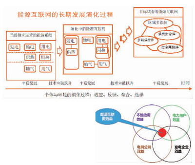 能源互聯(lián)網(wǎng)的發(fā)展是一個(gè)長(zhǎng)期演化過程,是以當(dāng)前相對(duì)獨(dú)立規(guī)劃運(yùn)營(yíng)的多種能源網(wǎng)絡(luò)為出發(fā)點(diǎn),通過多能源子系統(tǒng)的互聯(lián)互通、市場(chǎng)化商業(yè)運(yùn)營(yíng)、反饋激勵(lì)下的不同主體相互聚合形成的反饋循環(huán)。在此過程中,各主體逐步適應(yīng)調(diào)整、聚合進(jìn)化,由個(gè)體演化到局部復(fù)制、擴(kuò)散,成功的網(wǎng)絡(luò)結(jié)構(gòu)和運(yùn)營(yíng)模式不斷自我復(fù)制,通過自然選擇逐步進(jìn)化到成目標(biāo)狀態(tài)的能源互聯(lián)網(wǎng),實(shí)現(xiàn)高比例可再生能源和高能效。能源互聯(lián)網(wǎng)的發(fā)展,將隨著如儲(chǔ)能技術(shù)、轉(zhuǎn)換技術(shù)等關(guān)鍵技術(shù)的突破,經(jīng)歷若干個(gè)歷史階段,每一個(gè)技術(shù)相對(duì)穩(wěn)定的歷史階段內(nèi),能源互聯(lián)網(wǎng)的形態(tài)和運(yùn)營(yíng)是連續(xù)變化的,各階段之間則是在技術(shù)引領(lǐng)下實(shí)現(xiàn)階躍,無(wú)論是物理互聯(lián)、信息融合還是市場(chǎng)形態(tài)都發(fā)生根本性變化。